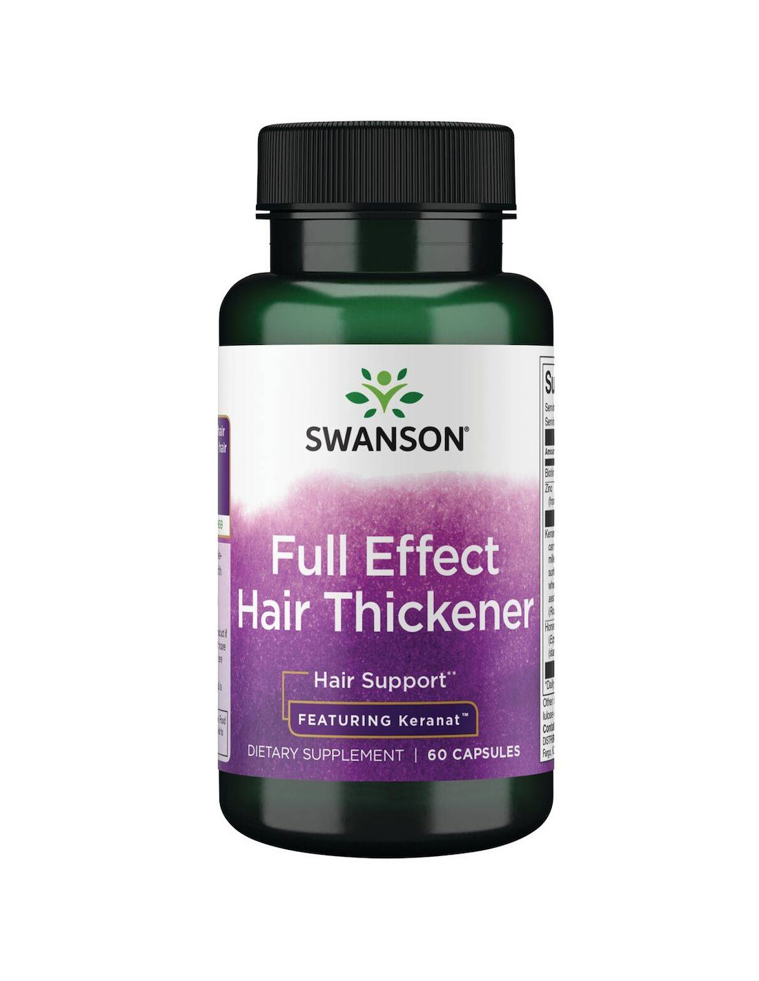Tym, co czyni zagęszczacz do włosów Swanson Full Effect wyjątkowym, jest Keranat, opatentowany i badany klinicznie składnik pochodzący z prosa zbożowego, będącego źródłem rzadkiej cząsteczki zwanej miliacyną. Miliacyna to triterpenoid stymulujący produkcję keratyny, białka strukturalnego występującego we włosach, skórze i paznokciach. Keranat wykorzystuje kapsułkę lipidową, która pomaga poprawić biodostępność miliacyny, co, jak wykazano u kobiet, poprawia kondycję skóry głowy i wspomaga wzrost, grubość i objętość włosów.