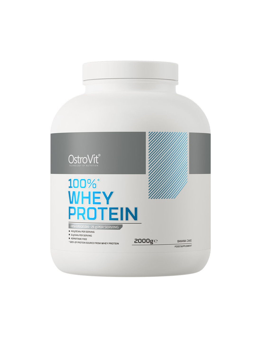 OstroVit 100% Whey Protein to suplement diety, który stanowi źródło koncentratu białka serwatki, zawierający aż 70% wysokiej jakości protein. To preparat, który dostarcza do organizmu aminokwasy rozgałęzione BCAA, a także niezbędne aminokwasy egzogenne EAA. To niskotłuszczowy produkt, dostępny w postaci proszku w różnych wariantach smakowych, który został stworzony z myślą o sportowcach i osobach, którym zależy na uzupełnieniu codziennej diety w cenny makroskładnik.