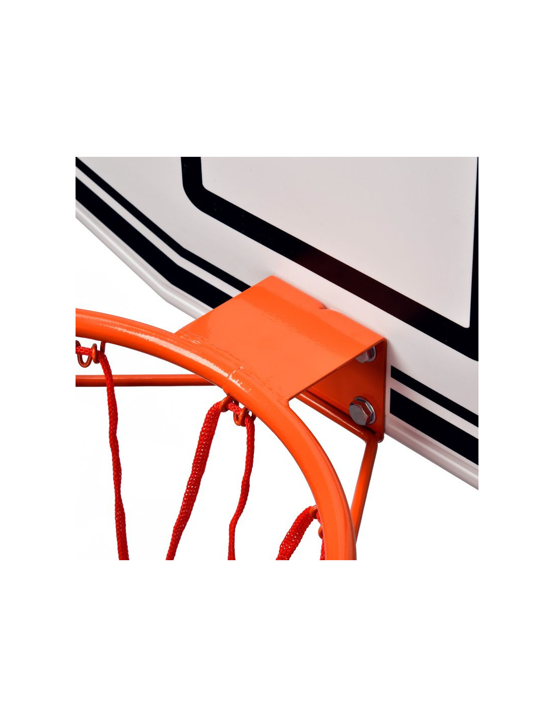 - Wytrzymała stalowa obręcz oraz tablica z solidnego polietylenu, gwarantują długą żywotność produktu. Tablica zapewnia wysoką jakość odbicia.