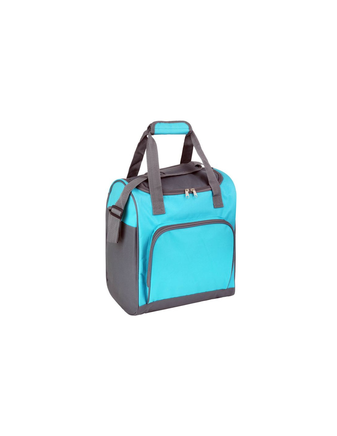 - Większa z toreb posiada trzy ścianki usztywnione i jedną miękką, dzięki czemu nie sprawi Ci dyskomfortu, gdy będziesz ją niósł zawieszoną na ramieniu. Z przodu umieszczona jest dodatkowa zapinana na zamek kieszeń, w której zmieścisz sztućce czy nawet mały talerz. Torba ma pojemność 25 l. Sprawia to, że spokojnie zmieścisz do niej większą ilość jedzenia, gdy będziesz szykować się do jakiegoś wyjazdu. Oprócz paska na ramię, torba posiada także uchwyty do wygodnego jej przenoszenia.