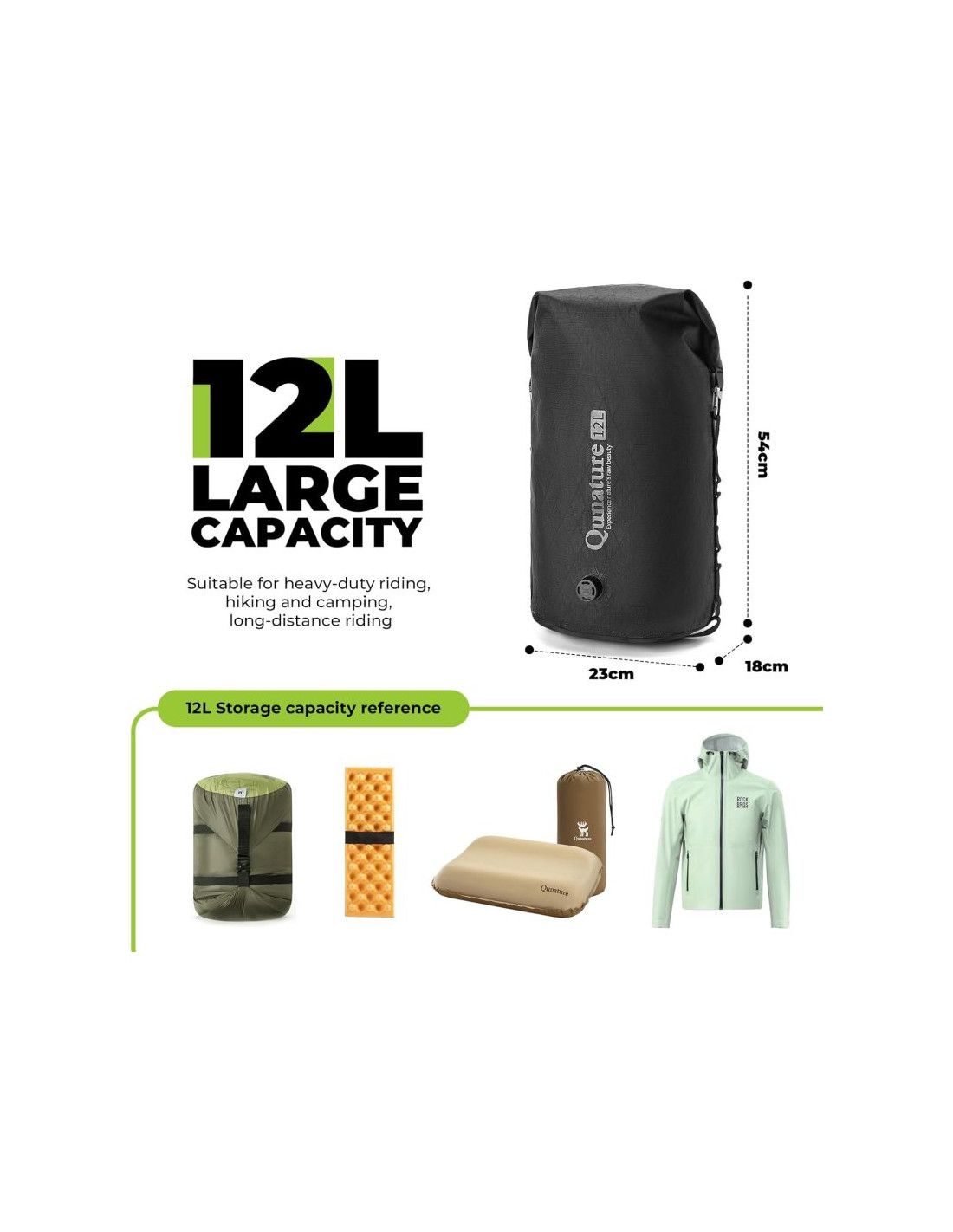 - Wszechstronne zastosowanie: idealnie nadaje się do jazdy na rowerze, wędrówek, pływania kajakiem, na kemping, zapewnia niezawodną ochronę wyposażenia podczas każdej przygody na świeżym powietrzu
