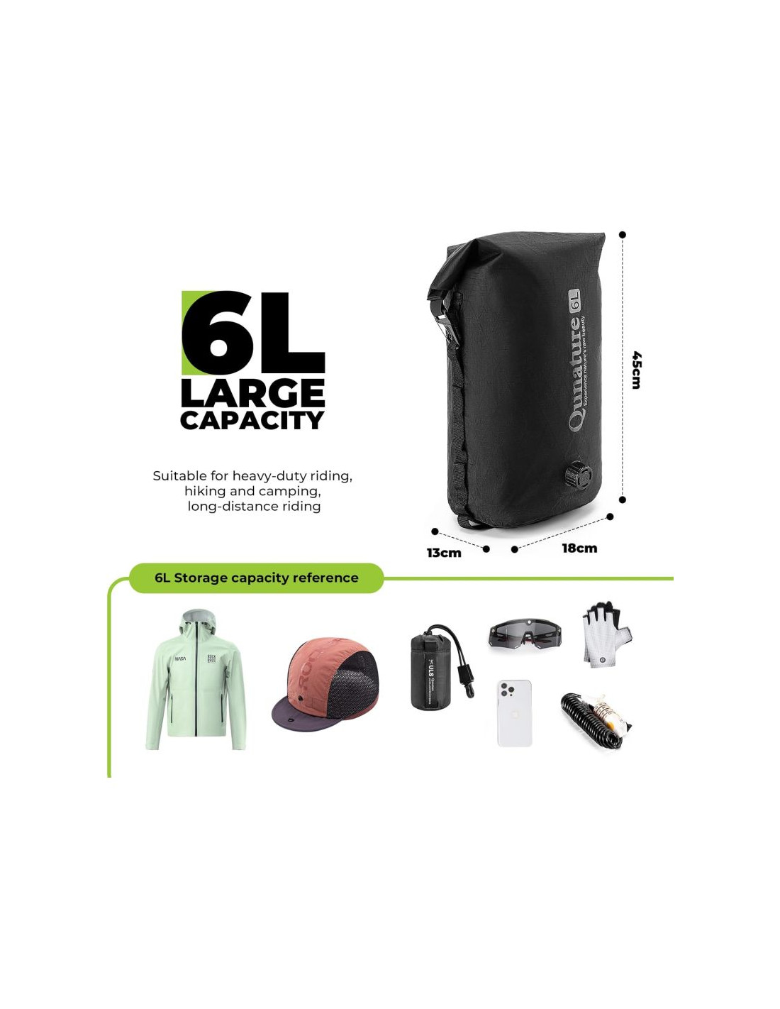 - Wszechstronne zastosowanie: idealnie nadaje się do jazdy na rowerze, wędrówek, pływania kajakiem, na kemping, zapewnia niezawodną ochronę wyposażenia podczas każdej przygody na świeżym powietrzu