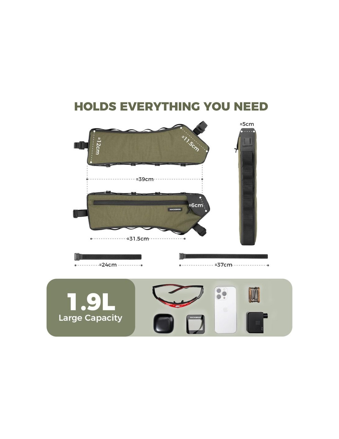 - Duża pojemność – pojemność 1,9 l: ROCKBROS torba rowerowa o pojemności ok. Pojemność 1,9 l na telefon komórkowy, okulary, mini pompkę, narzędzia i klucze. Boczny zamek błyskawiczny zapewnia szybki dostęp, wewnętrzne kieszenie z siatki zapewniają porządek. Idealna jako torba na górną rurę do rowerów wyścigowych, MTB i trekkingowych