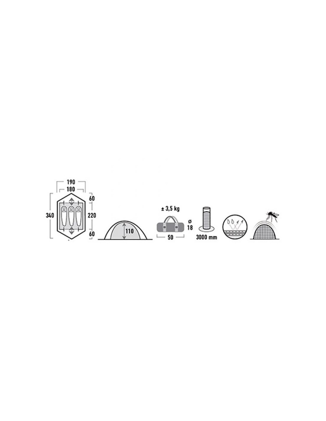 - Wymiary po rozłożeniu: 180 x 220 ( + 85 cm przedsionek )