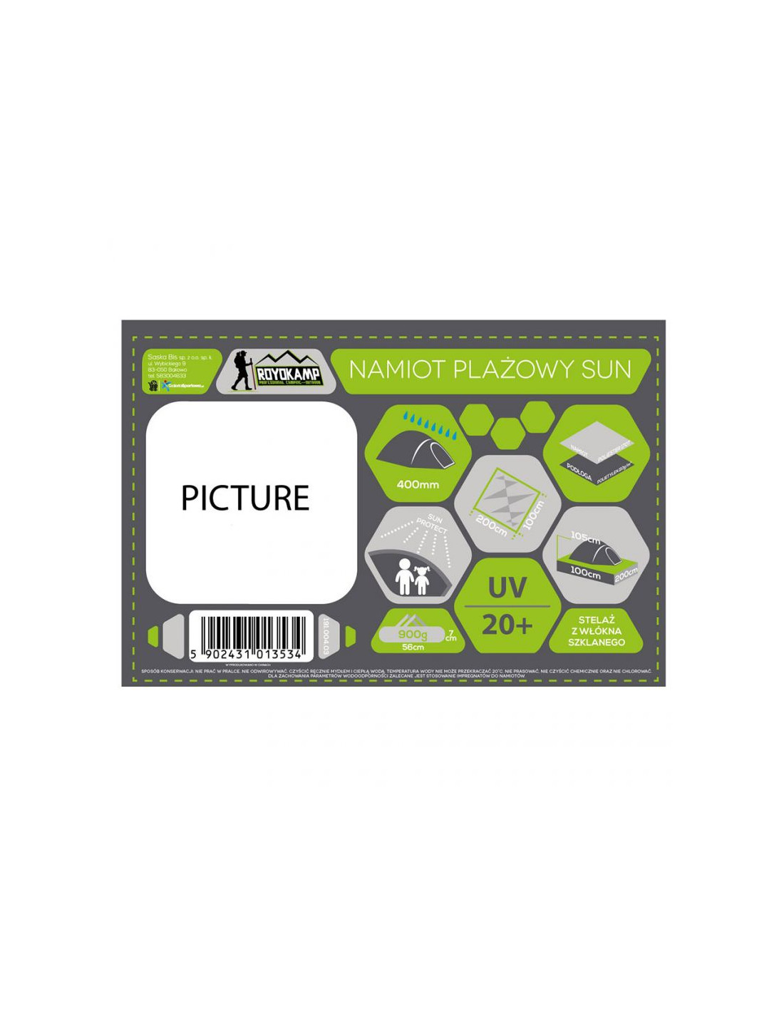 - Model: Namiot plażowy Sun 200x100x105 Royokamp 1013534