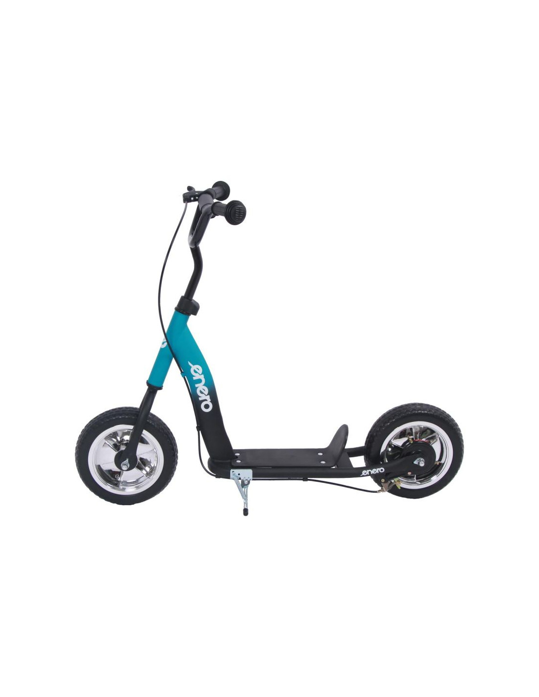 Jakość: hulajnoga ma bardzo stabilną, wysokiej jakości obrobioną i spawaną ramę z rur stalowych ze składaną podpórką boczną i solidną stopką wykonaną z antypoślizgowego tworzywa sztucznego.