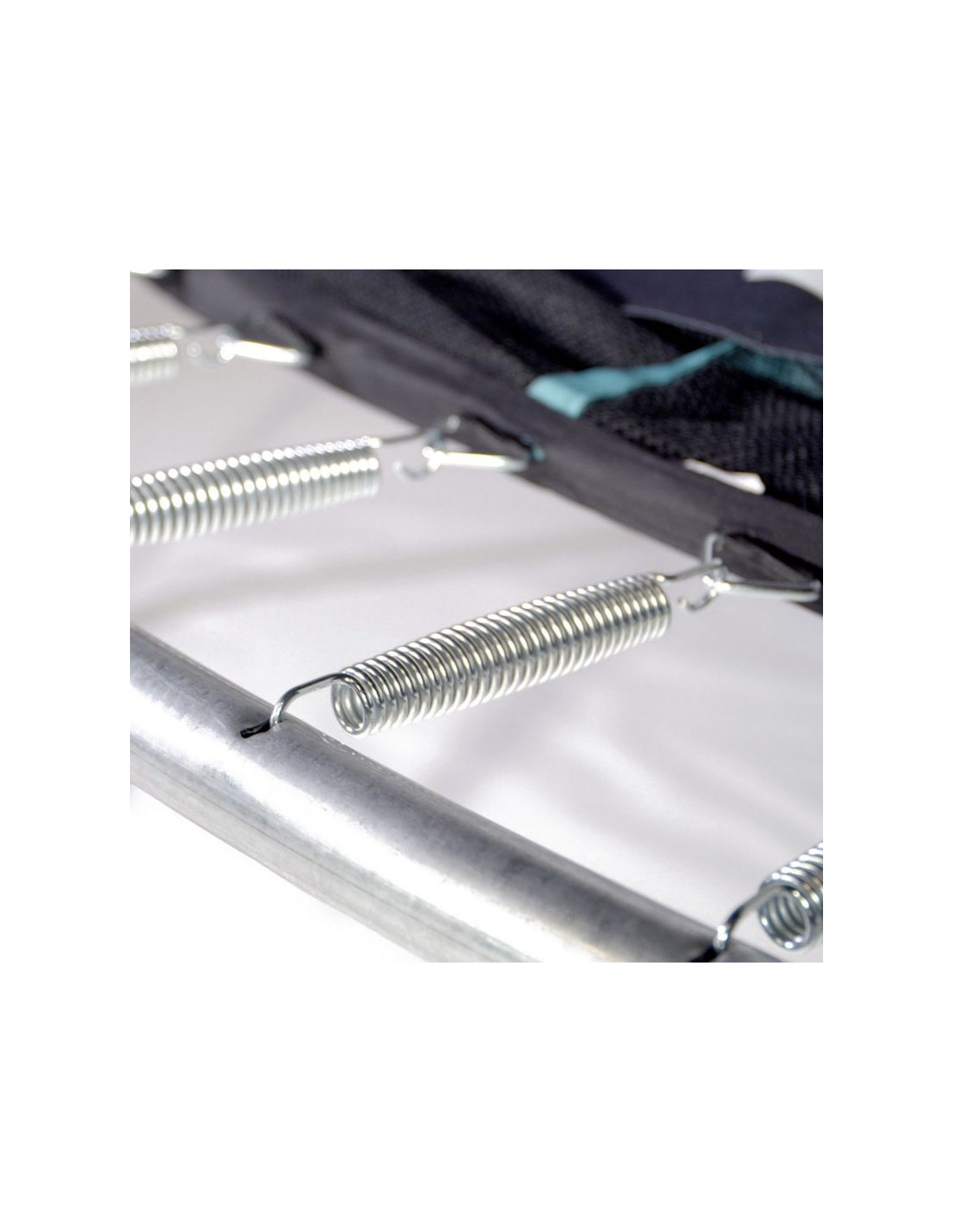 - Sprężyny znajdują się poza strefą skakania, są one dodatkowo pokryte podwójnie wyściełaną mikroporowatą pianką.