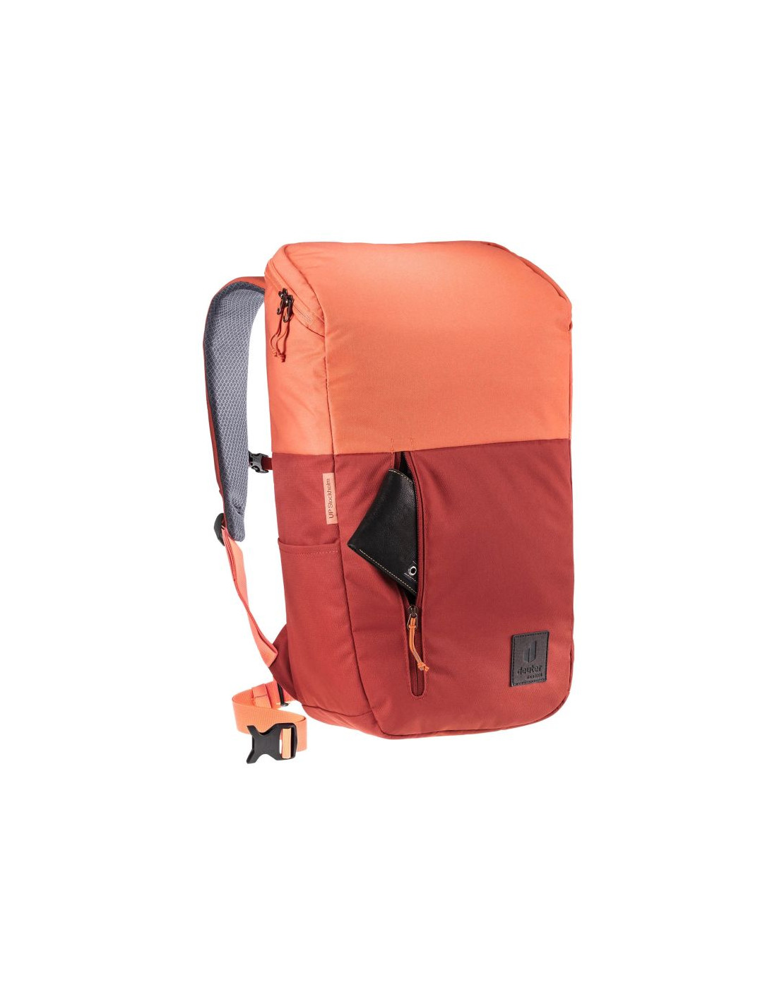 Deuter UP Stockholm Redwood Sienna to nowoczesny plecak o pojemności 22 litrów, stworzony w 100% z przetworzonych butelek PET (około 35 sztuk). Ekologiczna konstrukcja łączy minimalistyczny design z funkcjonalnością. Plecak wyposażony jest w usztywniony tylny panel i ergonomiczne szelki, które zapewniają wysoki komfort noszenia. Duża komora główna mieści dokumenty formatu A4, laptopa do 15,6 cala oraz codzienne akcesoria. Wewnętrzny organizer, oddzielna przegroda na laptopa, kieszeń na tablet i boczne kieszenie na butelkę zwiększają wygodę użytkowania. Kolorystyka Redwood Sienna nadaje mu elegancki i nowoczesny charakter, idealny zarówno do pracy, jak i na co dzień.