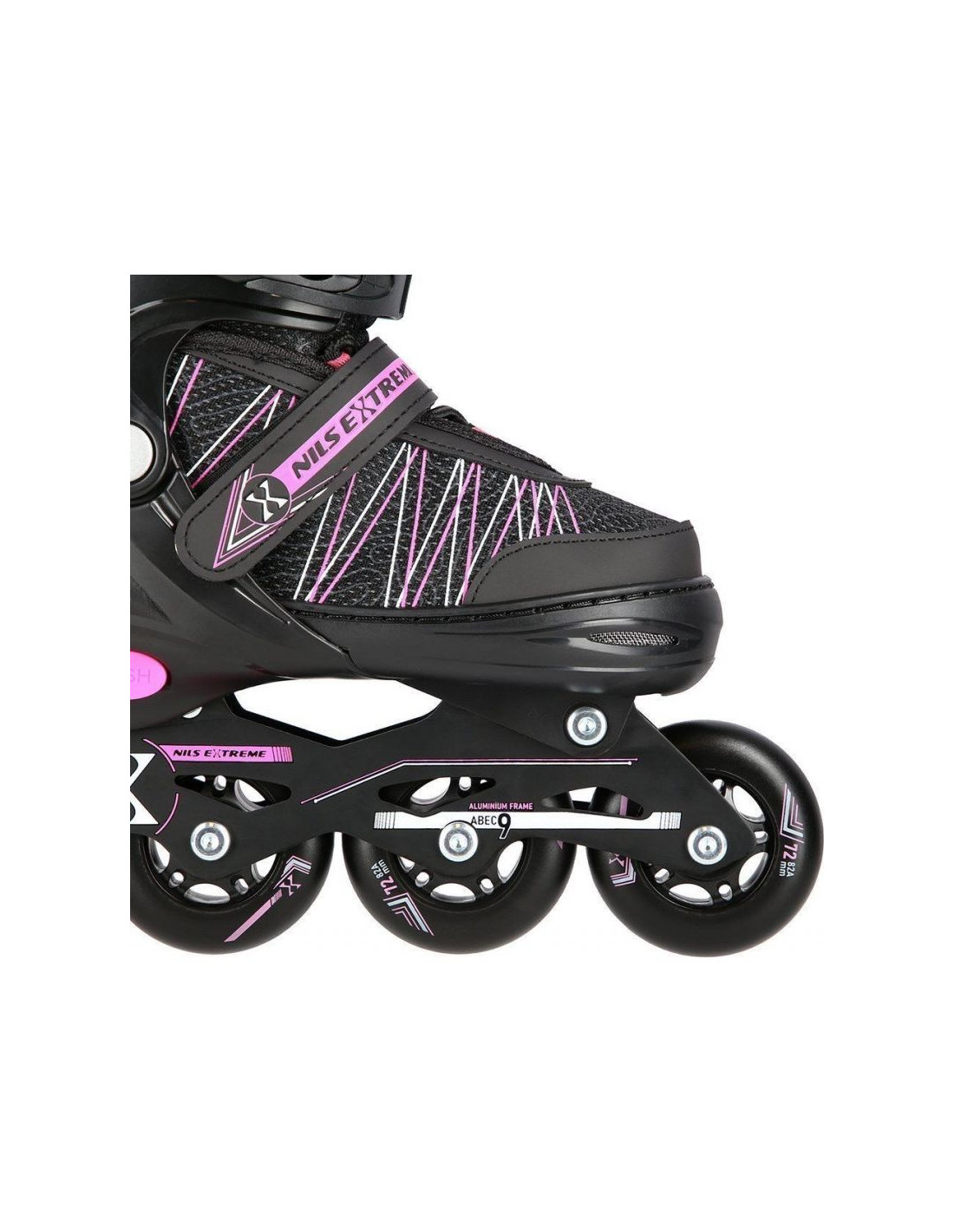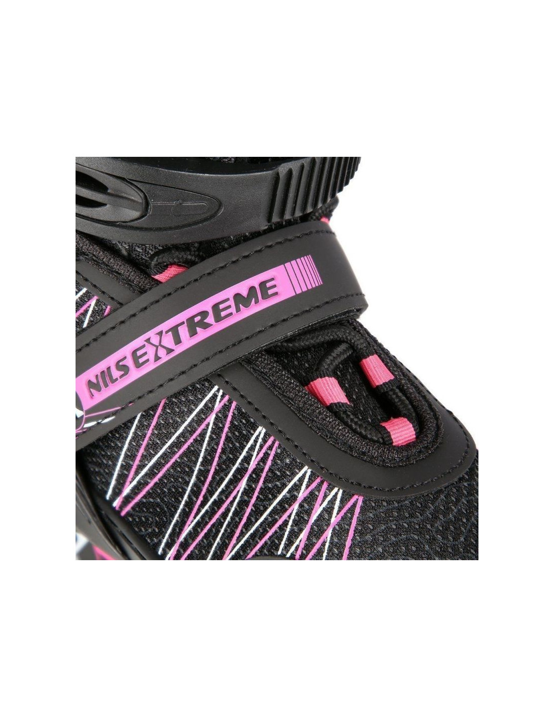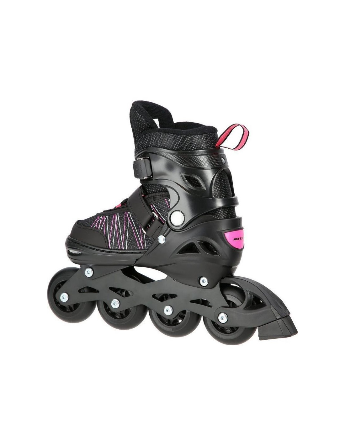 Łyżworolki Nils Extreme NH11912 A 2w1 z wymienną płozą hokejową Jr 16-21-045 Właściwości: Cechy Dedykowana płeć: Unisex Typ zamknięcia Pasek Sznurowane zamknięcie Złączka na zatrzask Grupa docelowa: Uniwersalne Typ łożyska: ABEC9 Kolor kółek: Czarny...