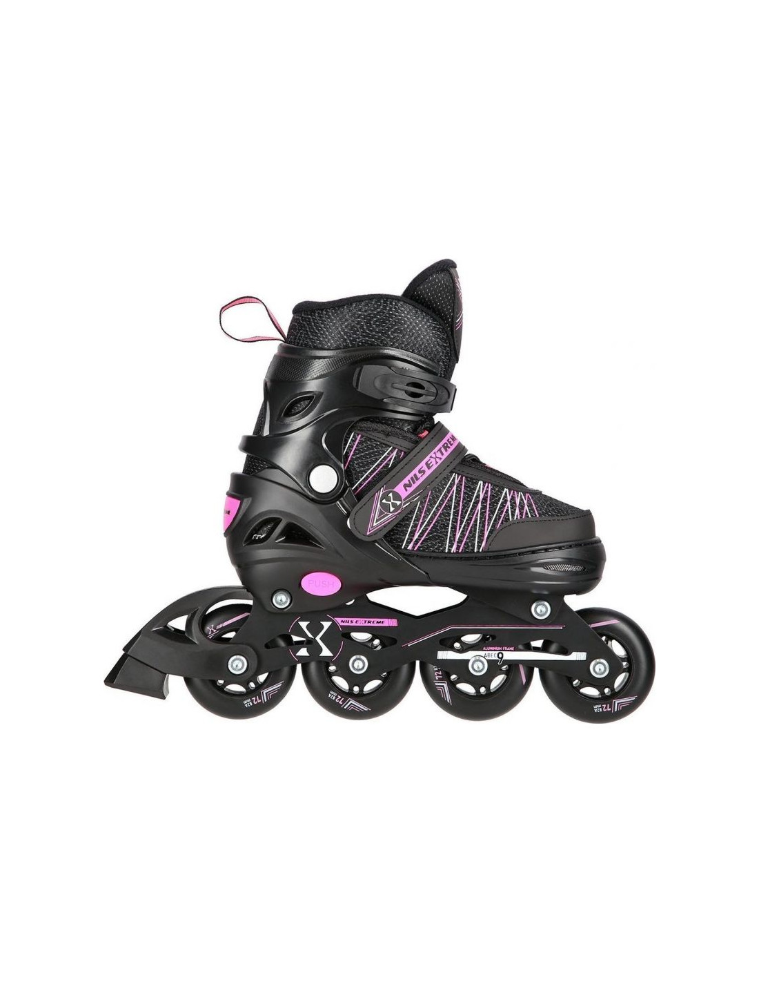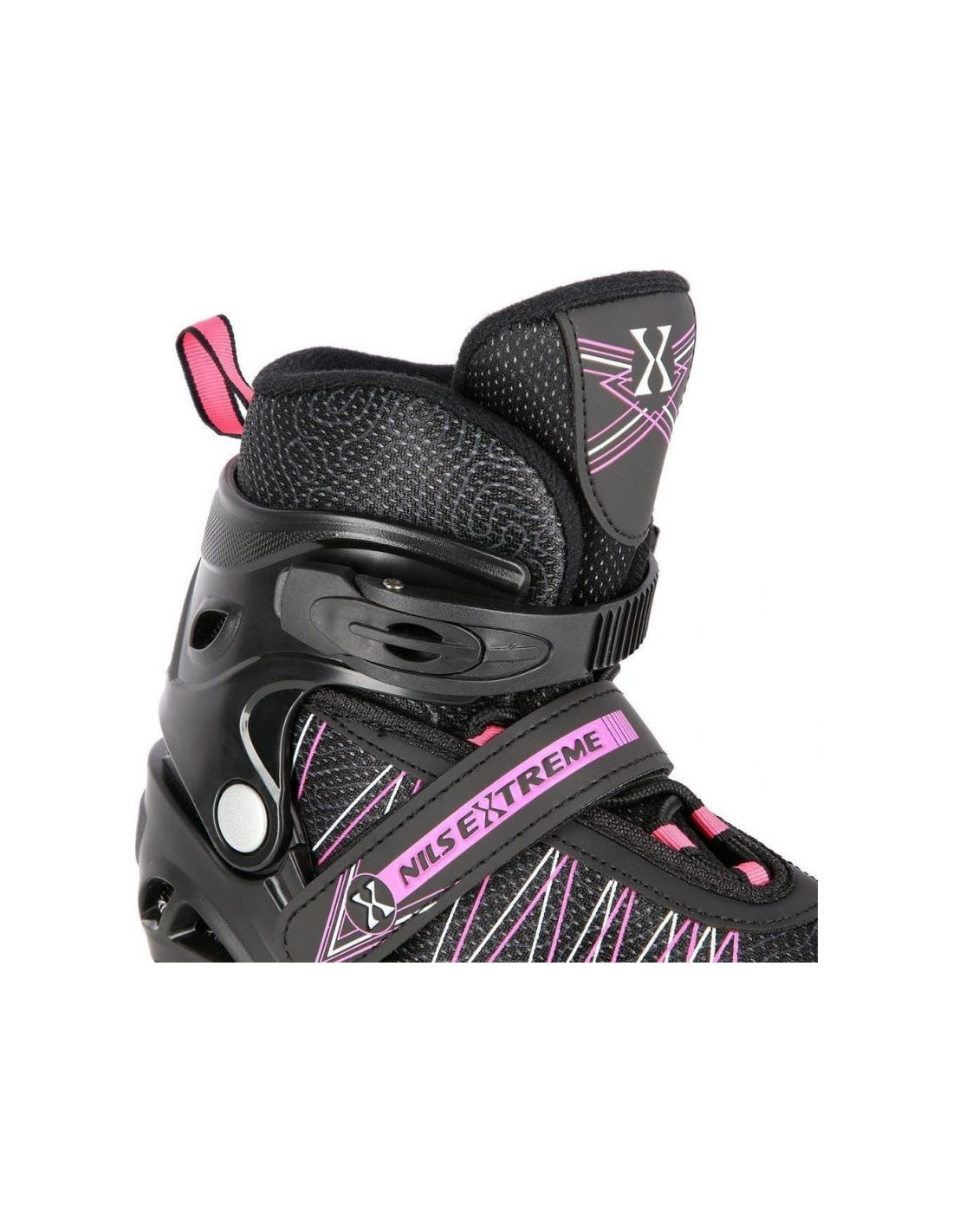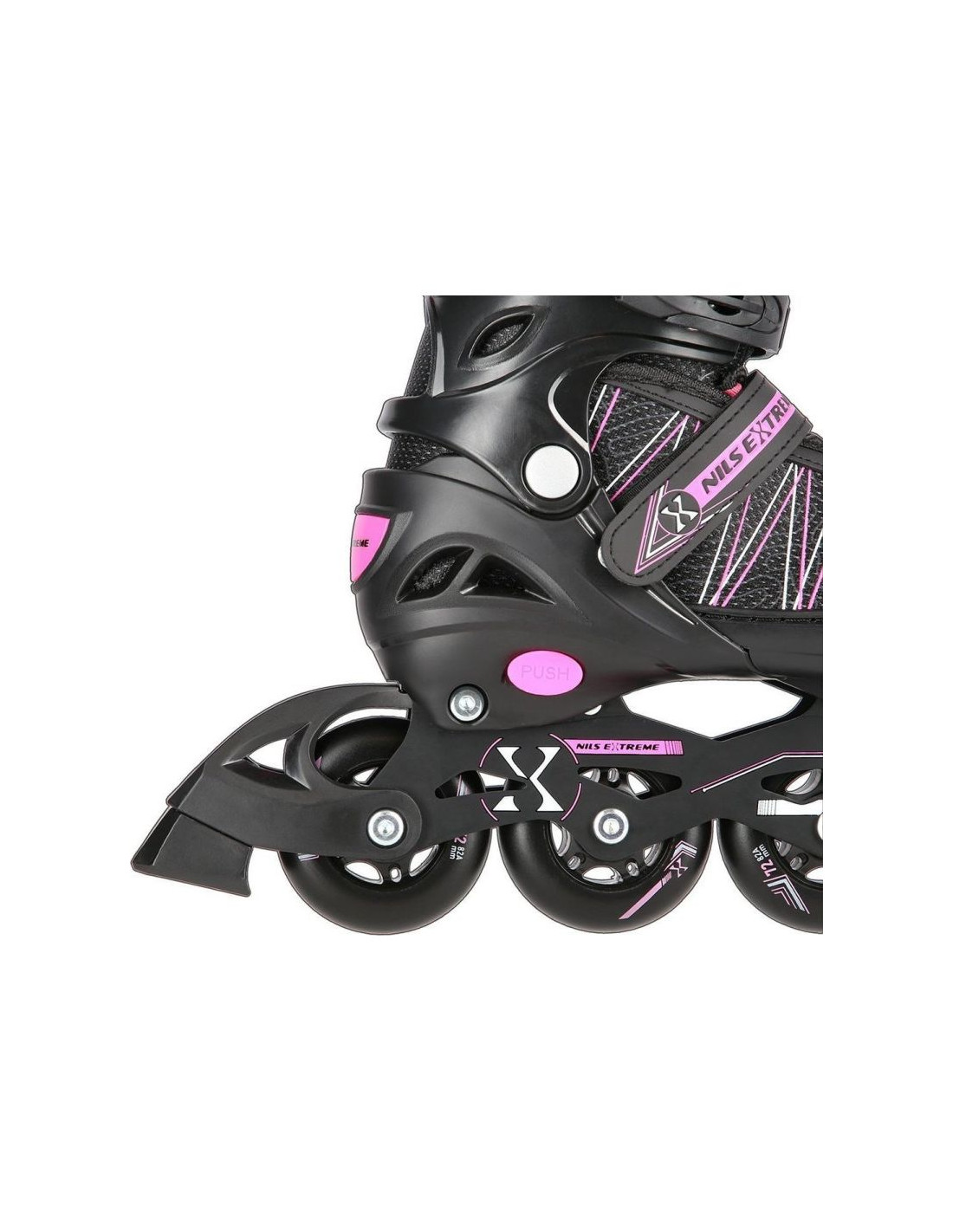 Łyżworolki Nils Extreme NH11912 A 2w1 z wymienną płozą hokejową Jr 16-21-045 Właściwości: Cechy Dedykowana płeć: Unisex Typ zamknięcia Pasek Sznurowane zamknięcie Złączka na zatrzask Grupa docelowa: Uniwersalne Typ łożyska: ABEC9 Kolor kółek: Czarny...