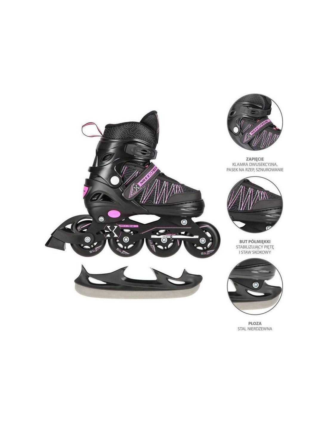 Łyżworolki nils extreme nh11912 a 2w1 z wymienną płozą hokejową jr 16