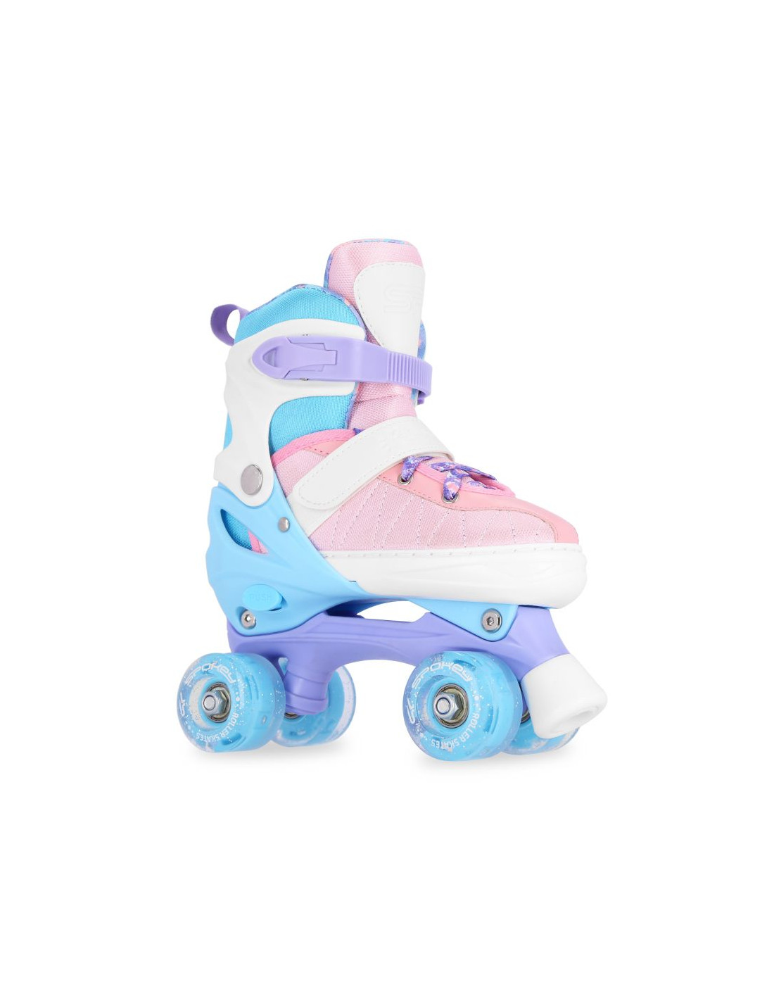 - Wrotki Spokey BUFF PRO: to idealne rozwiązanie dla najmłodszych, gdyż dzięki możliwości regulacji rozmiaru, wrotki rosną razem z dzieckiem, zostały wyposażone w łożyska ABEC-7, dzięki czemu wrotki wytrzymają przez wiele sezonów, posiadają kółka, które świecą podczas jazdy, są stworzone z myślą o bezpiecznej jeździe pełnej dziecięcej radości!