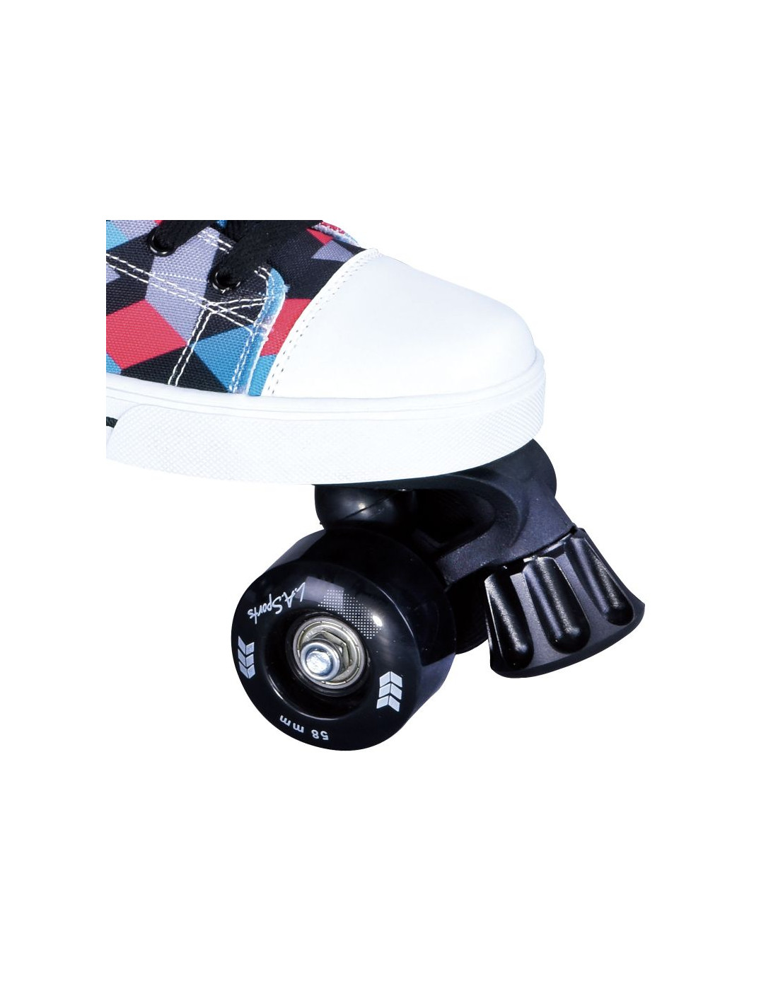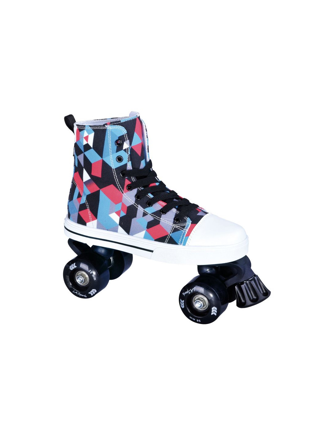 Wygodne i modne wrotki L.A. Sports przeznaczone są do jazdy rekreacyjnej. Wyglądem przypominają kolorowe trampki, a nowoczesny design sprawi, że będą wyróżniały się na tle innych. But wykonany z mocnej płóciennej tkaniny, przepuszcza powietrze. Dzięki temu jeździ się komfortowo nawet w lecie, kiedy temperatura jest wysoka. Sznurowadła sprawiają, że wrotka dobrze dopasowuje się do każdej stopy, co dodaje wygody i zabezpiecza ją przed urazem w razie upadku. Trwała płoza z PP, kółka z PU oraz łożyska ABEC-5 gwarantują płynność jazdy i wytrzymałość wrotek. Przedni hamulec zrobiony jest z PVC. Pętla znajdująca się z tyłu buta ułatwia zakładanie i ściąganie wrotek.
