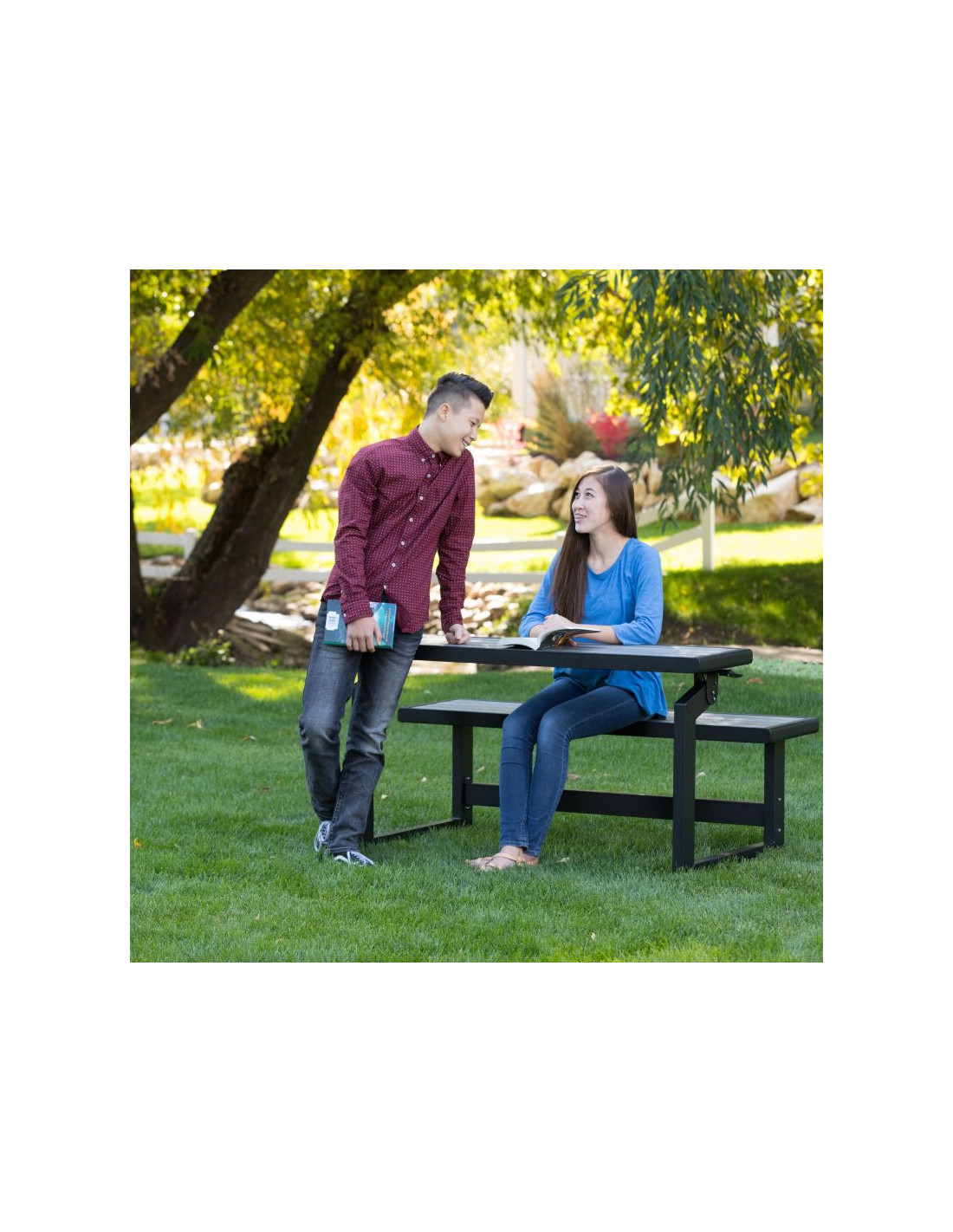 - Ławka ogrodowa marki Lifetime to idealny dodatek do Twojego ogrodu, który stworzy miejsce do spędzania przyjemnych popołudniowych chwil. Wykonana została z odpornego na warunki atmosferyczne polistyrenu imitującego drewno. Jeśli potrzebujesz, w ciągu kilku sekund przekształcisz jej oparcie w stół. Ławka jest zabezpieczona przed promieniowaniem UV, dzięki czemu nie blaknie, nie pęka, ani nie łuszczy się. W przeciwieństwie do drewnianych ławek, polistyren nie rozszczepia się i nigdy nie wymaga malowania ani lakierowania. Stalowa rama ma powłokę antykorozyjną, co gwarantuje, że ławka posłuży przez wiele lat.