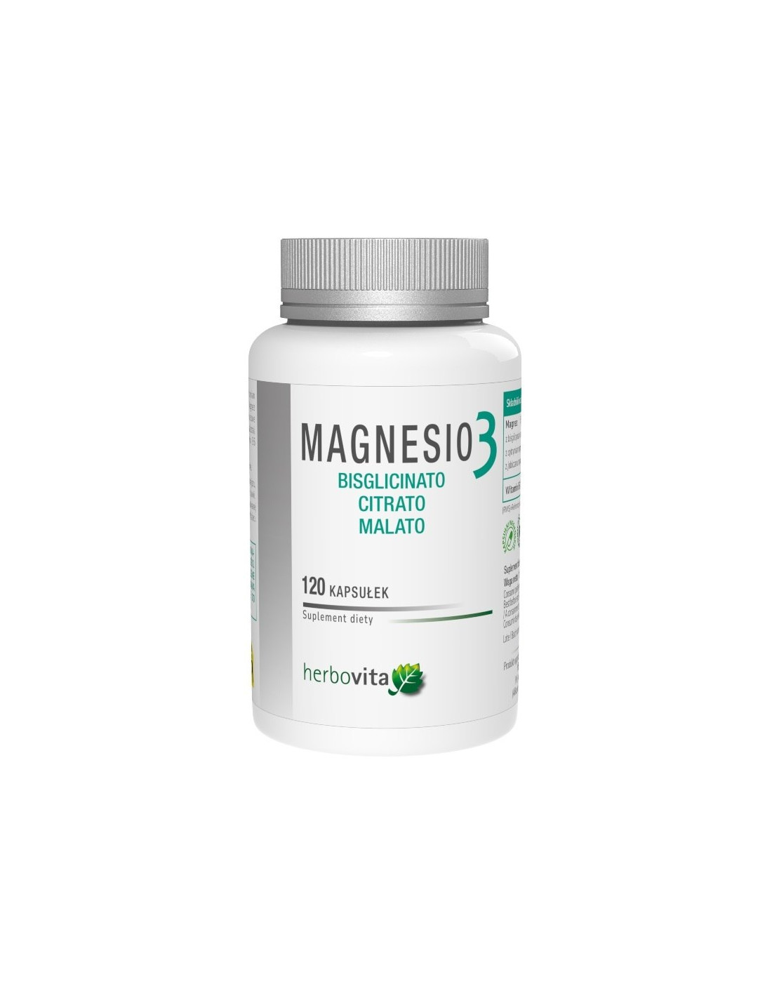 Magnez (bisglicynian magnezu), Magnez (cytrynian magnezu). Kapsułka roślinna (hydroksypropylometyloceluloza), magnez (jabłczan magnezu). Substancja przeciwzbrylająca (sole magnezowe kwasów tłuszczowych). Substancja wypełniająca (celuloza mikrokrystaliczna). Substancja przeciwzbrylająca (dwutlenek krzemu). Witamin B6 (chlorowodorek pirydoksyny).