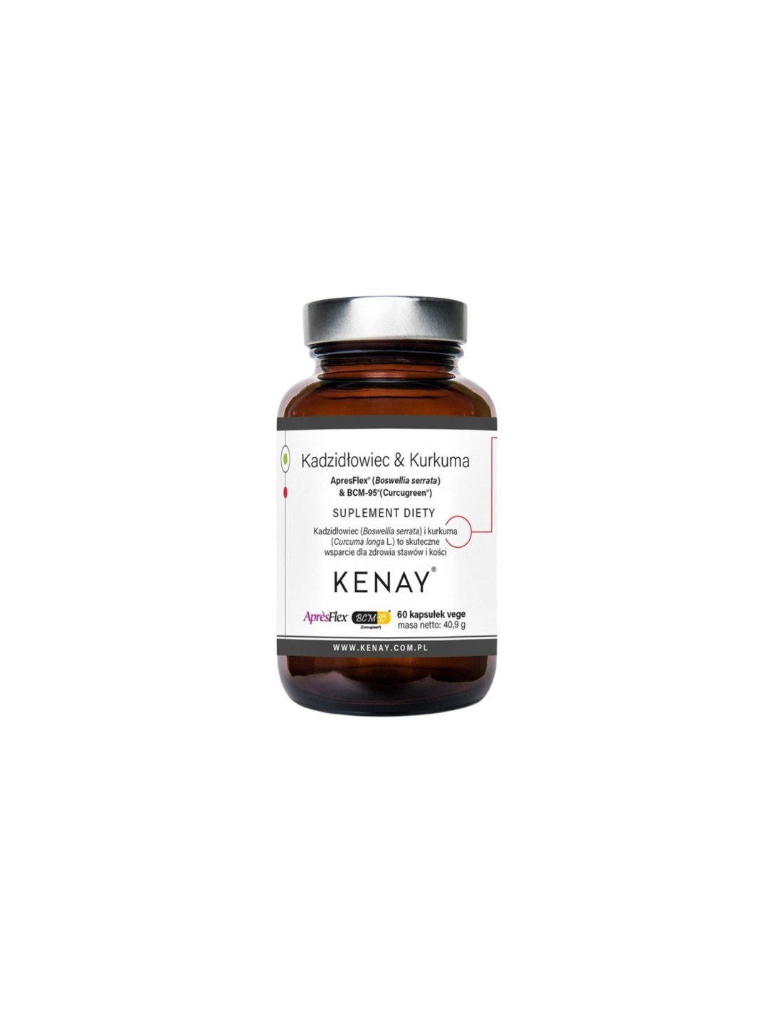 ekstrakt z kłącza kurkumy (Curcuma longa L.) standaryzowany na zawartość kurkuminoidów:95%; ekstrakt z żywicy kadzidłowca (Boswellia serrata) standaryzowany na zawartość kwasów bosweliowych: 20%; składnik otoczki kapsułki: hydroksypropylometyloceluloza.