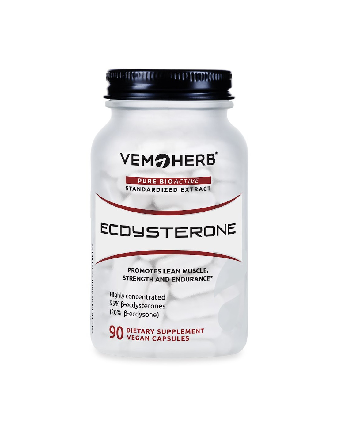 Składniki: wyciąg z korzenia leuzei (Leuzea carthamoides) standaryzowany do zawartości 95% beta-ekdysteronu, stabilizator – hydroksypropylometyloceluloza (składnik otoczki kapsułki), maltodekstryna, substancje przeciwzbrylające (sole magnezowe kwasów tłuszczowych, fosforan wapnia).